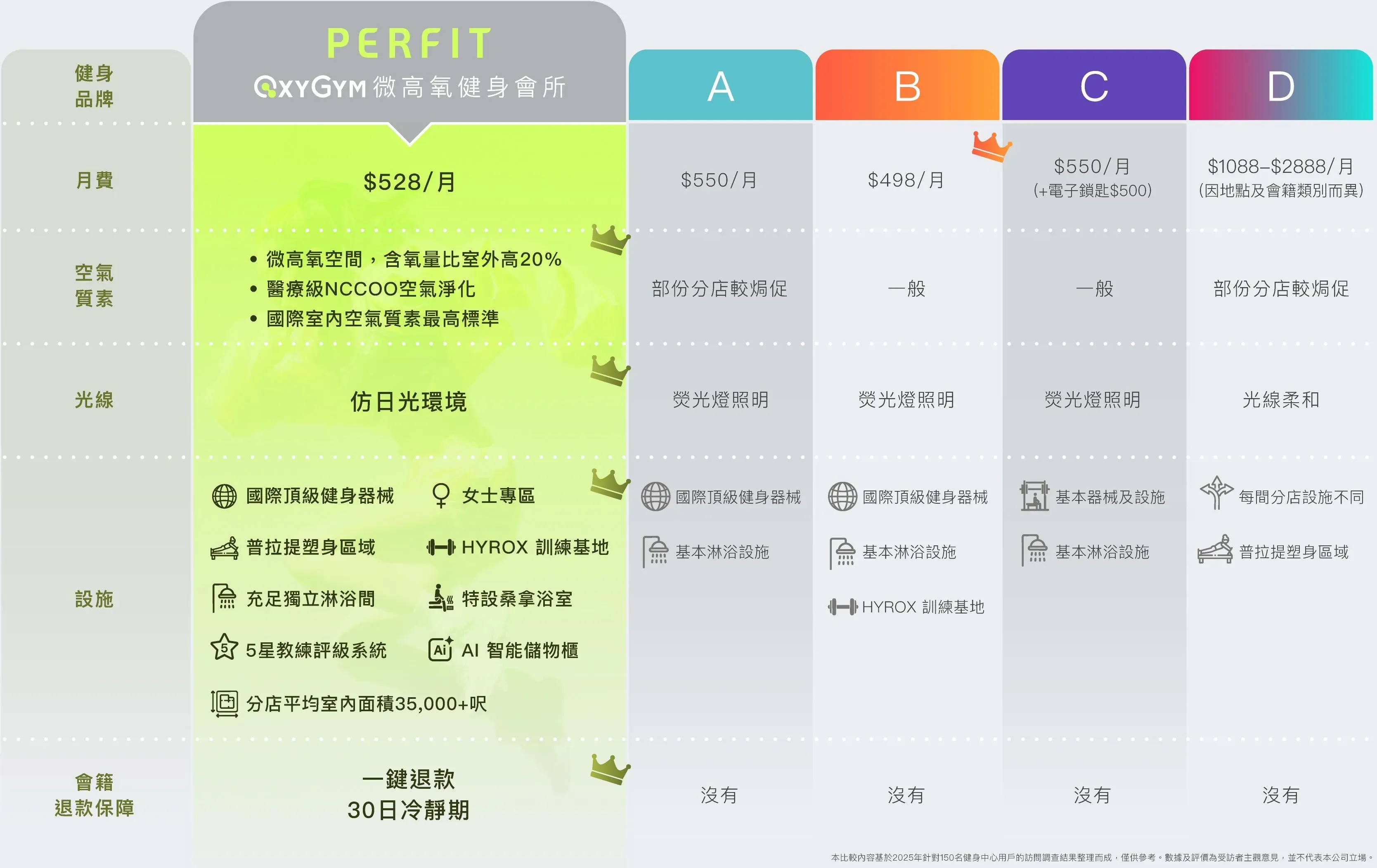 多種健身會籍方案,運動人士可以依據個人目標,自由選擇。